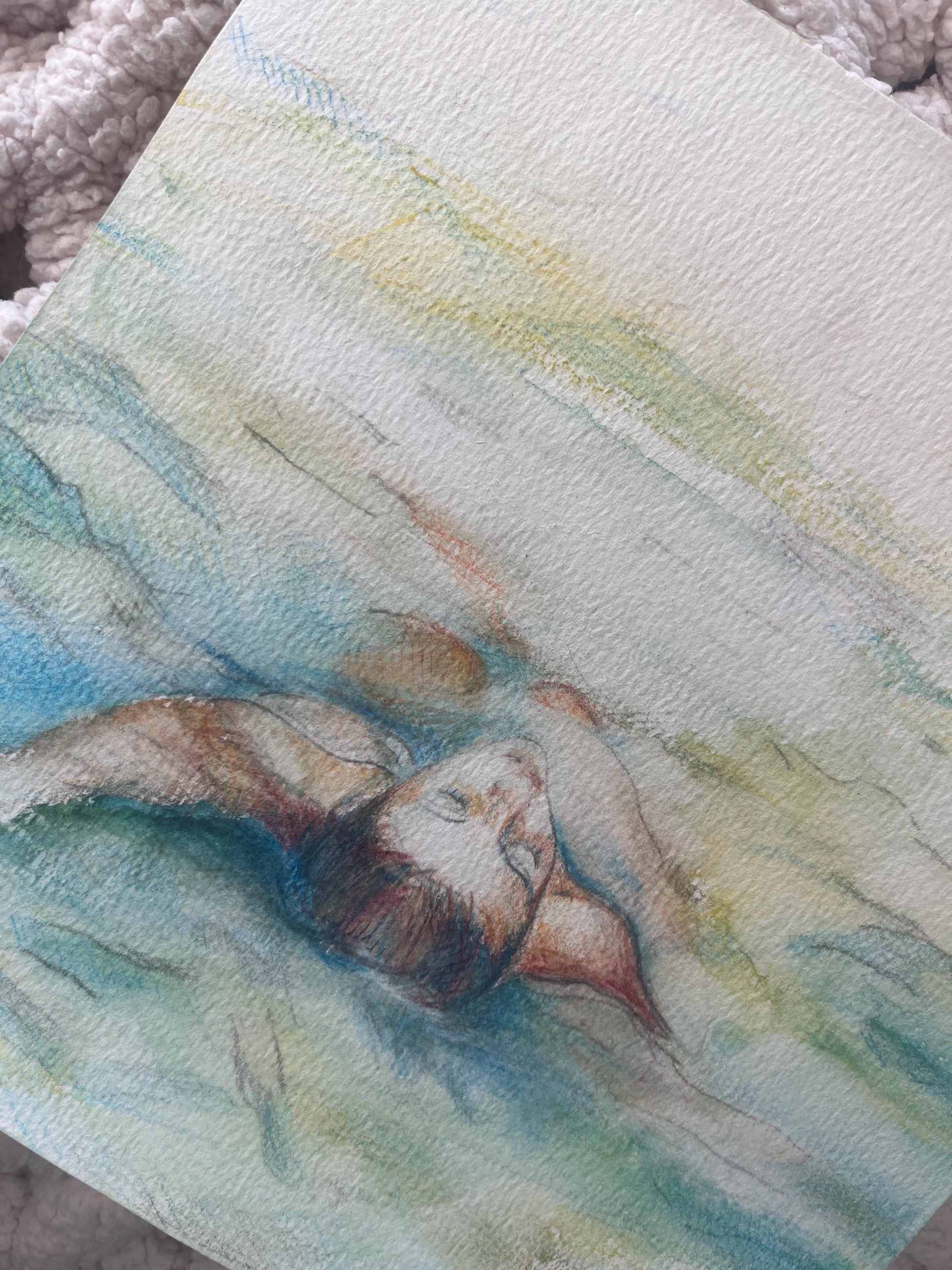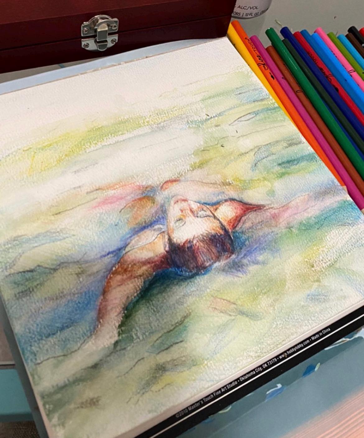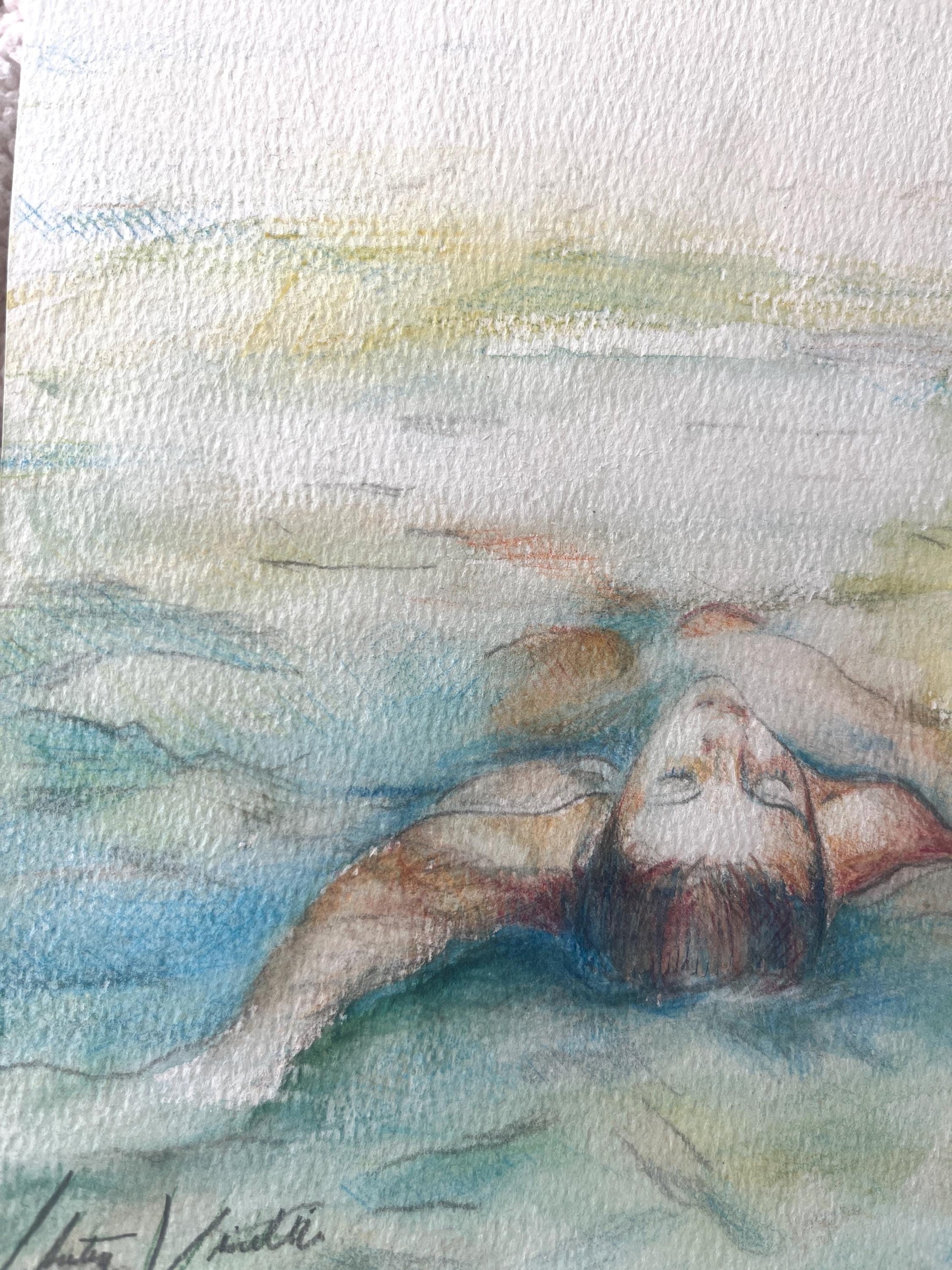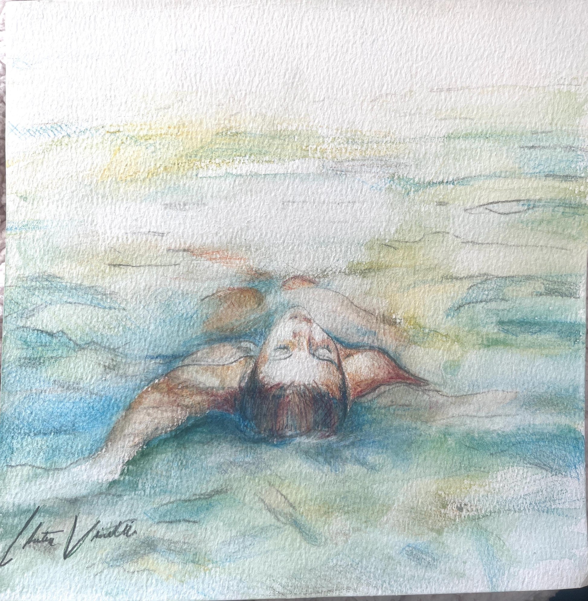 Floating in Blue Water- Watercolor Pencil Giclée Print on Multimedia paper